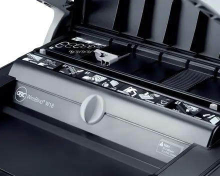 With document separating and auto centring as standard features the wirebind w18 can punch up to 15 x 80gsm sheets at once and bind up to 120 sheets using a 14 mm wire.