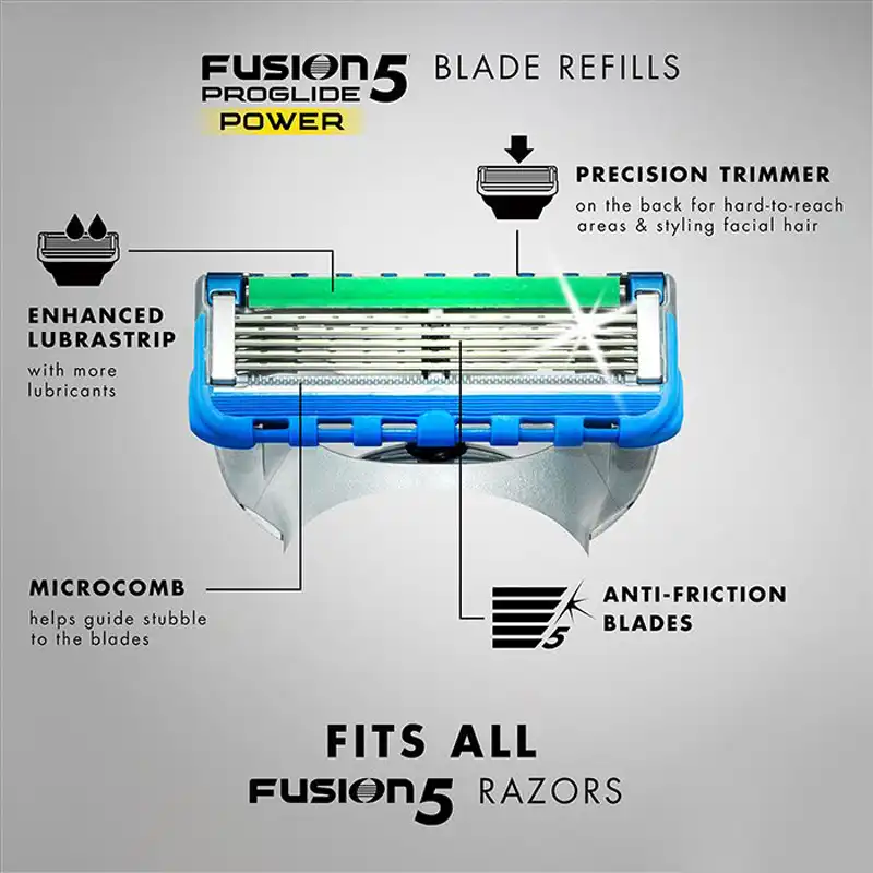 Gillette fusion5 men s razor blade refills come complete with 5 precision blades spaced closer together for incredible comfort.
