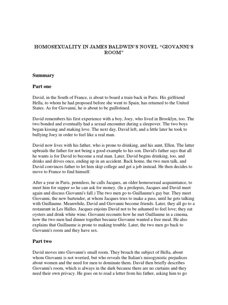 Giovanni S Room Summary And Analysis Like Sparknotes Free Book Notes