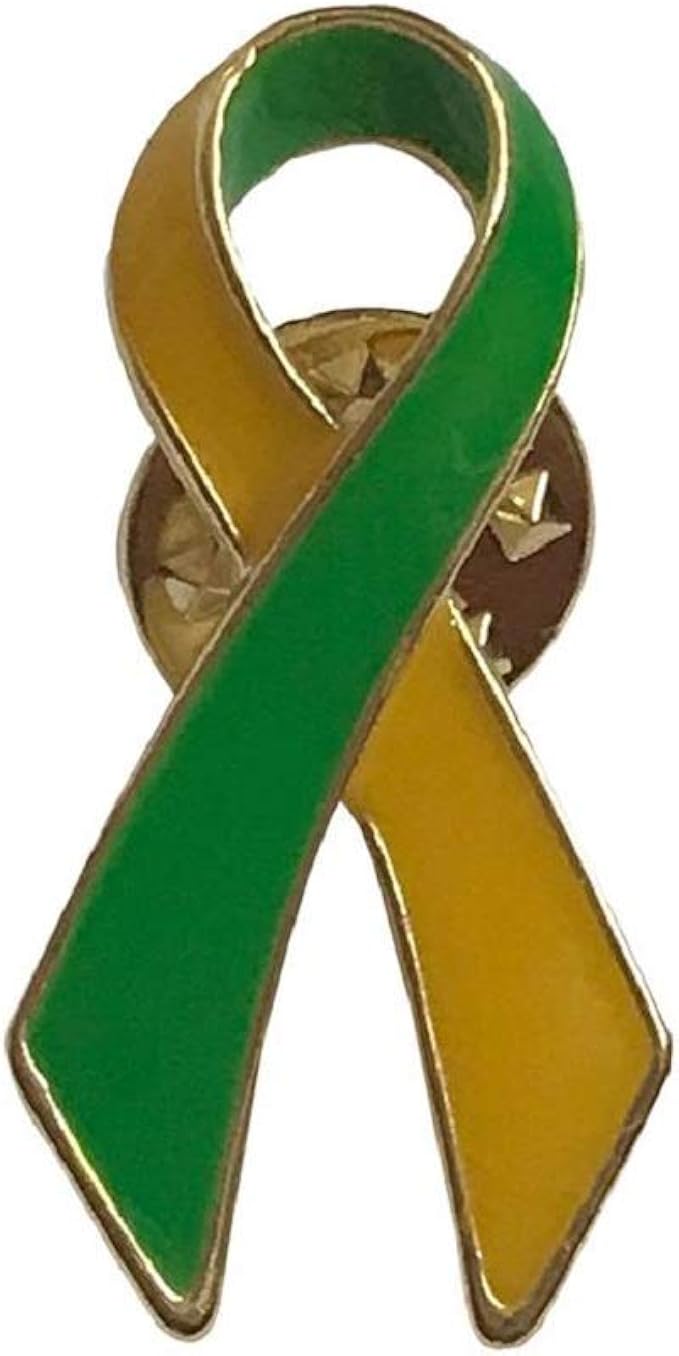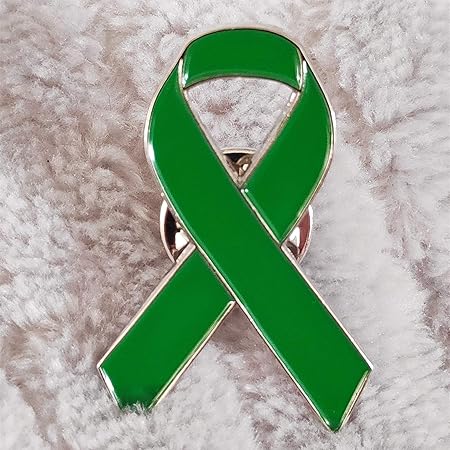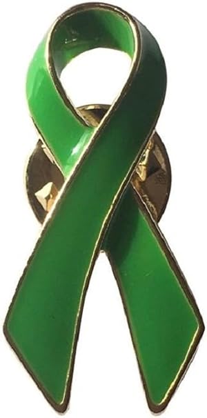 New green ribbon charity awareness pin.