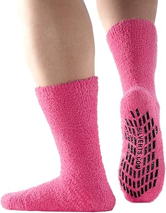 Non Skid Hospital Socks No Slip Socks Best Fuzzy Gripper Socks Slipper Socks Pink Xl Amazon Co Uk Shoes Bags